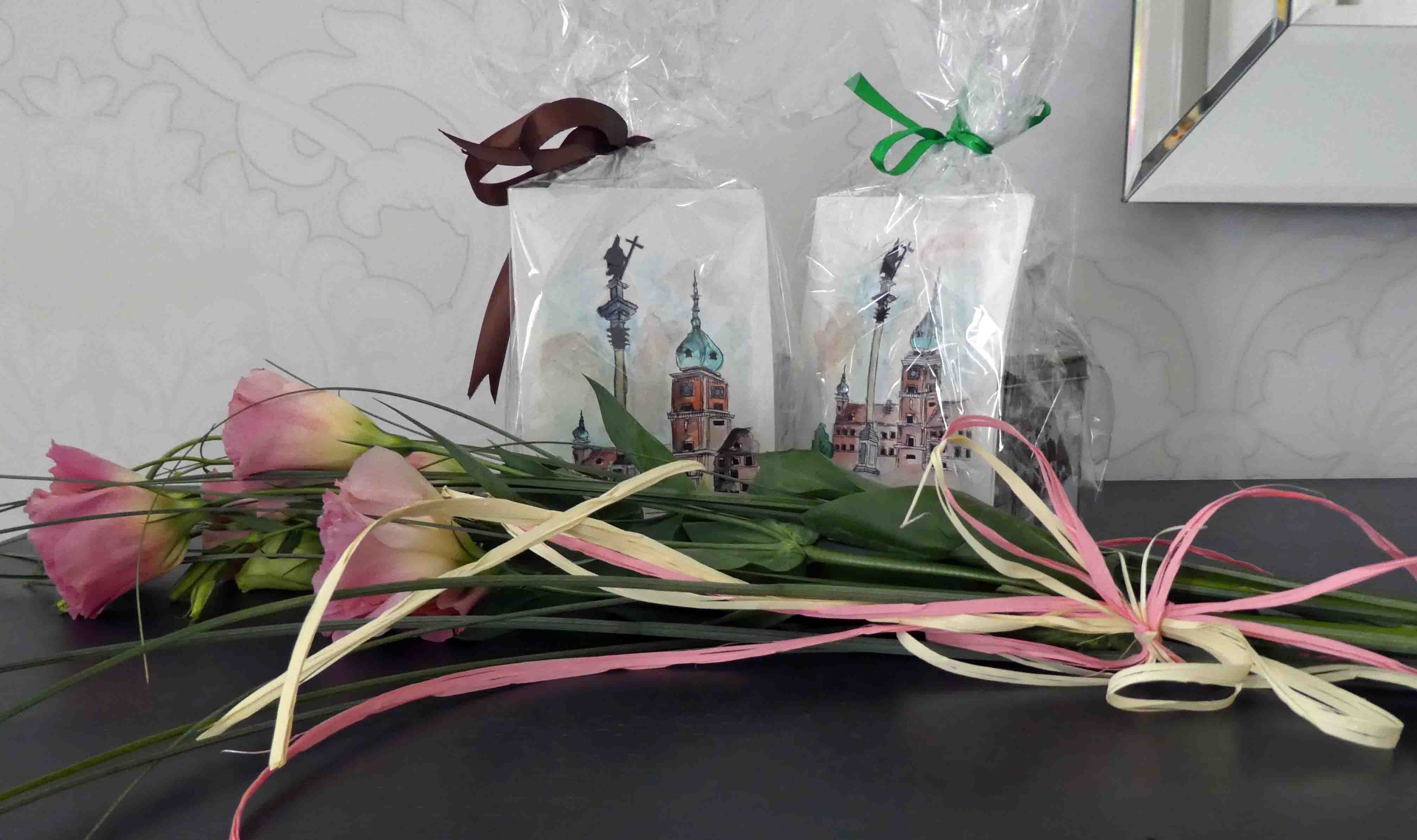 school’s gifts for Mimi & me: flowers, student-painted cards, and chocolates