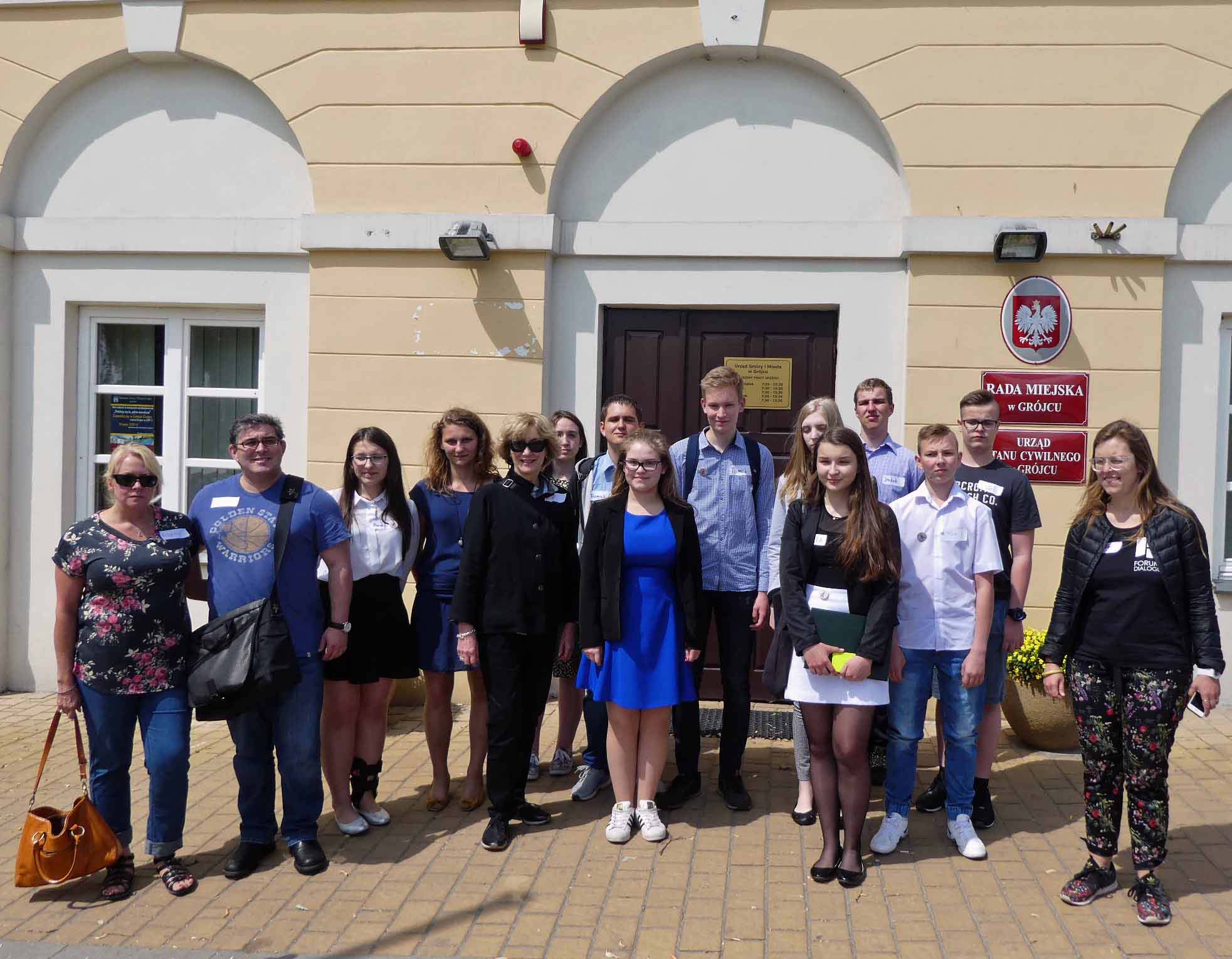 city tour ends – front row Rebecca & Jordan Elbaum, Anna, Natalia, Mimi Elbaum, Ola, Marta, Patryk and Anna Desponds; back row Kasia, Dominik, Tomek, Kinga, Jakub and Kuba
